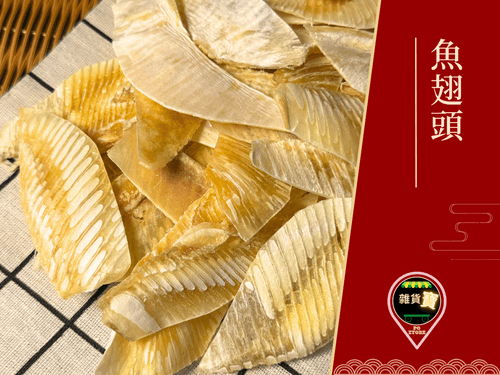 魚翅頭並非魚的頭部,而是鯊魚鰭的根部,連接魚鰭和魚身的部分。它含有豐富的膠質和軟骨,質地厚實,口感軟滑中帶有彈性,膠質非常豐厚,價格通常比完整的魚翅經濟實惠。